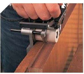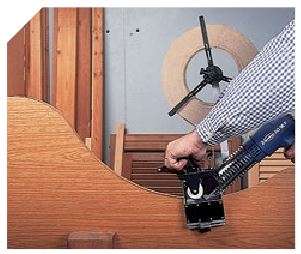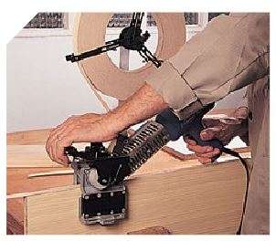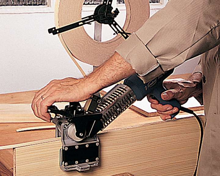 Den smarte konstruksjonen med justerbare klemmer gir svært god stabilitet og nøyaktighet under arbeidet. Et praktisk kantbeskjæringssystem er inkludert, og du kan velge mellom plan liming eller liming med overheng på én eller begge sider.