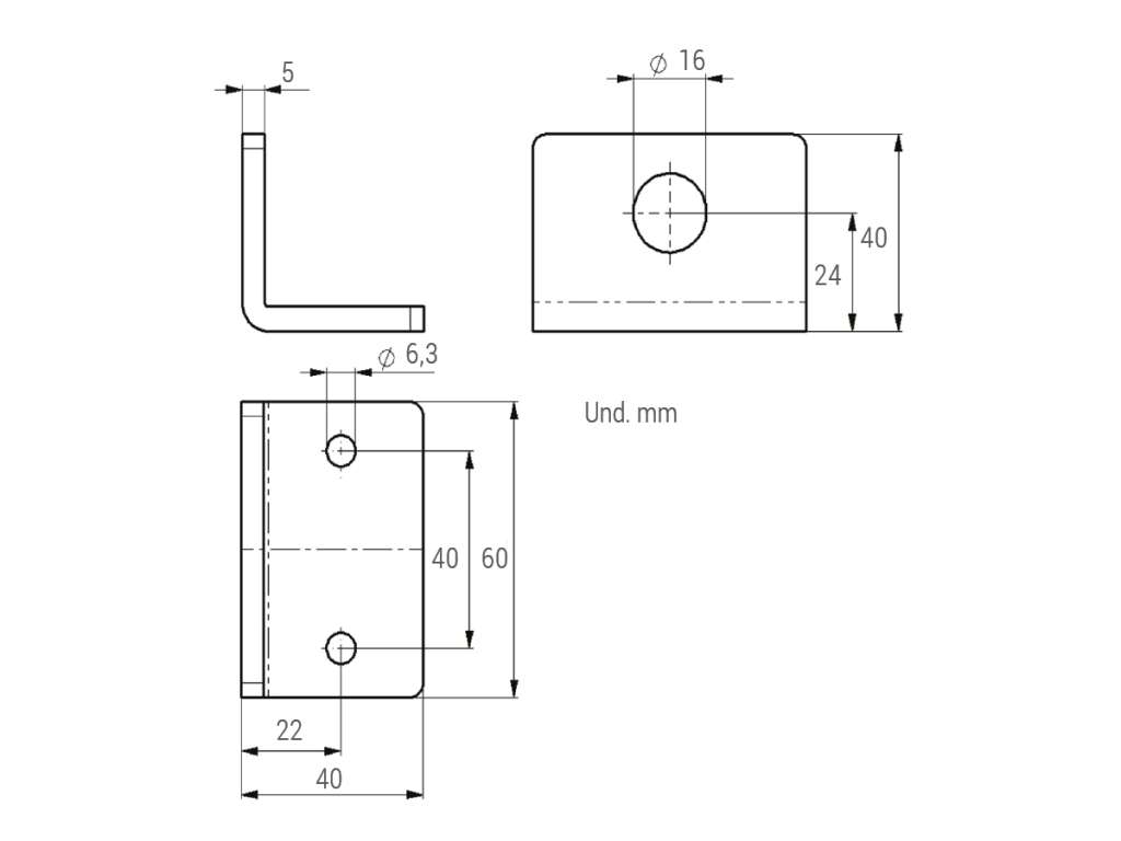 Stålvinkel for innfesting av malklemmer sidepress, størrelse 65×44 mm