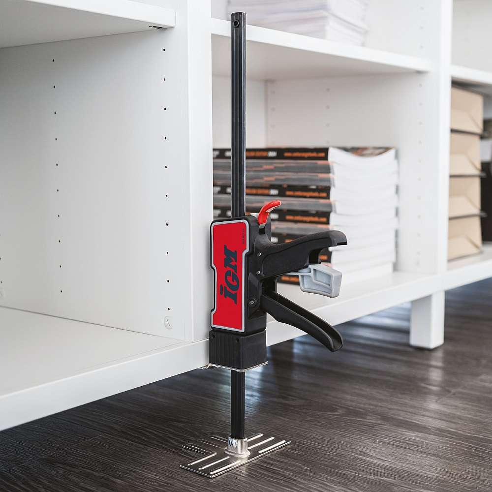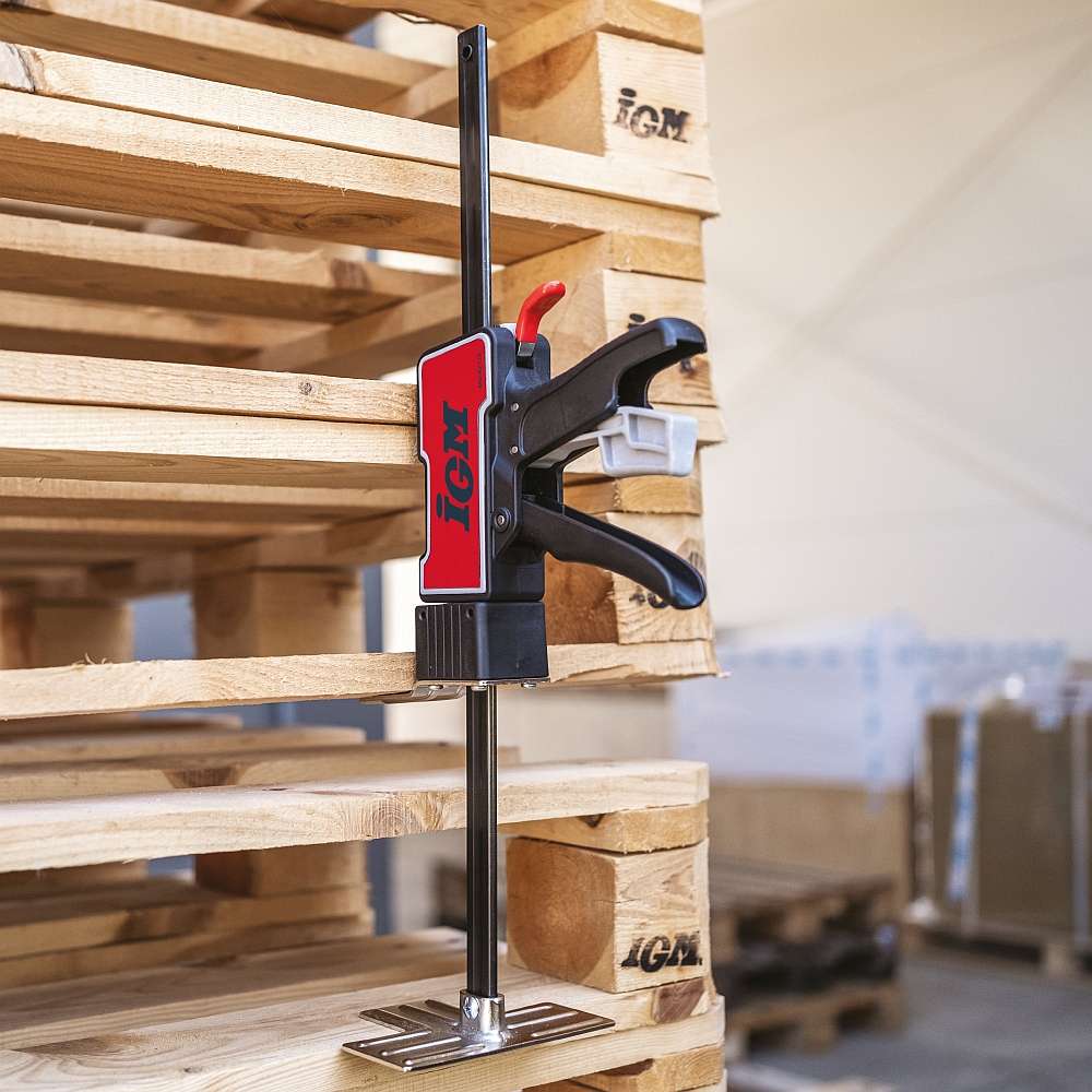 ved legging av gulv. Trykk på den røde hendelen for å senke verktøyet raskt.