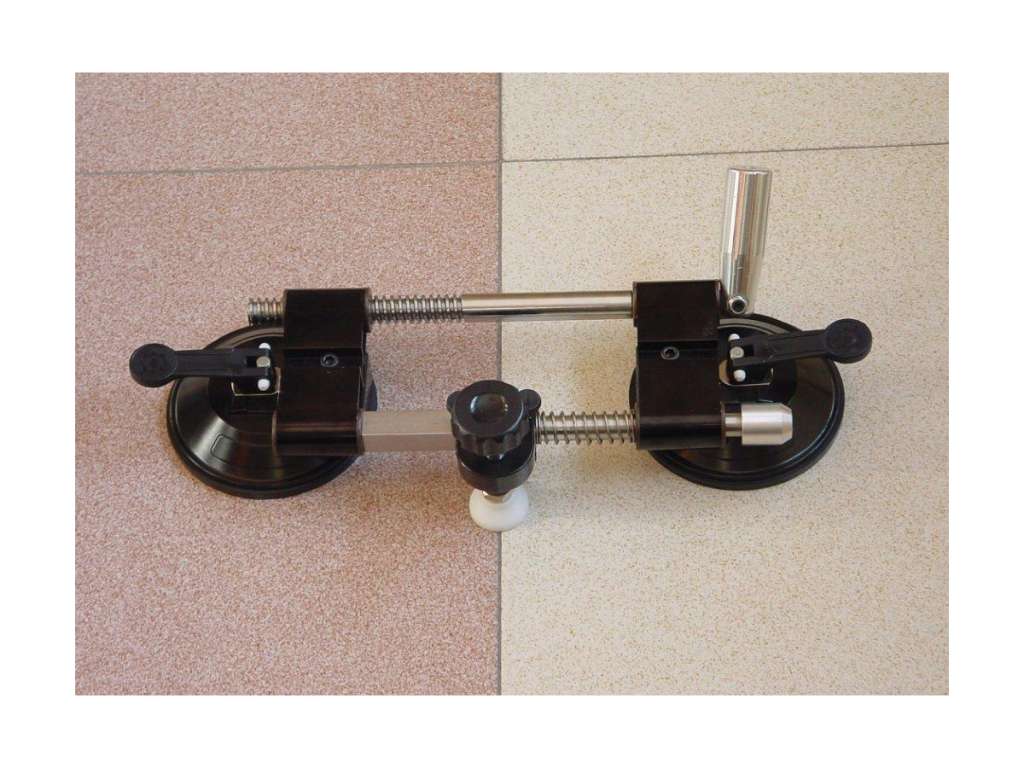 Sugekopp med 2 kopper, Skrue for sammentrekning og nedpress for flisearbeid. 2 kopper Ø 117 mm, Maks 25 kg løft, fremstilt i aluminium og gummi sugekopp