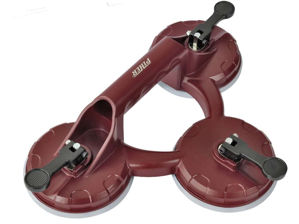 Sugekopp med 3 kopper, for håndtering av glass, fliser etc. Ø 123×3 mm, Maks 100 kg løft, fremstilt i aluminium og silikon sugekopp for å unngå merker på glass etc.