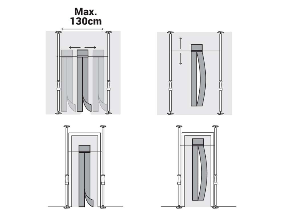 Magnetisk døråpning for å lage en effektiv støvsluse ved bygningsarbeider etc. Slusen monteres i plast som henges opp for å hindre at støv og forurensing sprer seg fra rom hvor det arbeides. Består av en sterk magnet som lukker seg automatisk når du har gått gjennom åpningen. Settet kommer med magnetåpning 225 cm høyde, 4 stk 36 cm festestenger for feste i topp, 2 stk universal klemfester 34044