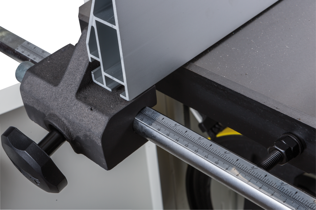 Innstilling av bladstyrer gjøres uten bruk av verktøy. T-spor i bordet.