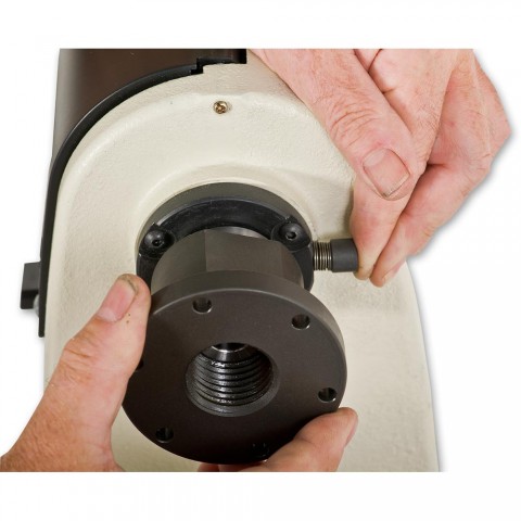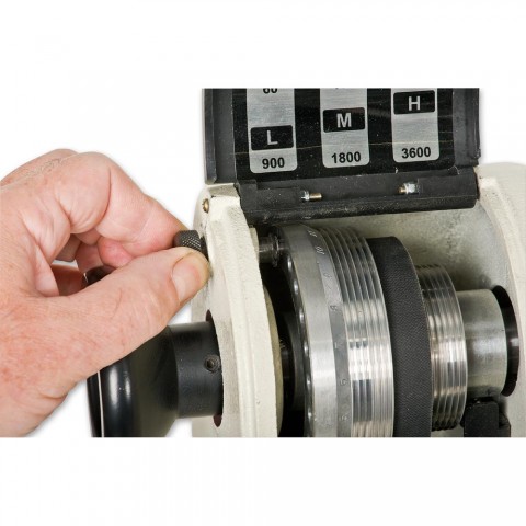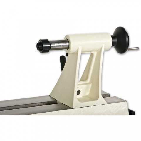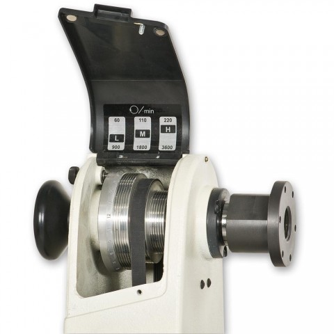 med 6 langsgående riller for optimal kraftoverføring og 3-hastighetsområder. Kontrollpanel med bryter, hastighetskontroll, dreieretningsbryter samt digitalt display for hastighet. Kraftig støpt bakdokke med pinol med 64 mm slaglengde og ACME skrue. Kraftige låsehendler ergonomisk plassert. Oppbevaringsplass på enden. Gjennomboret bakdokke og pinol. Indeksert spindel.