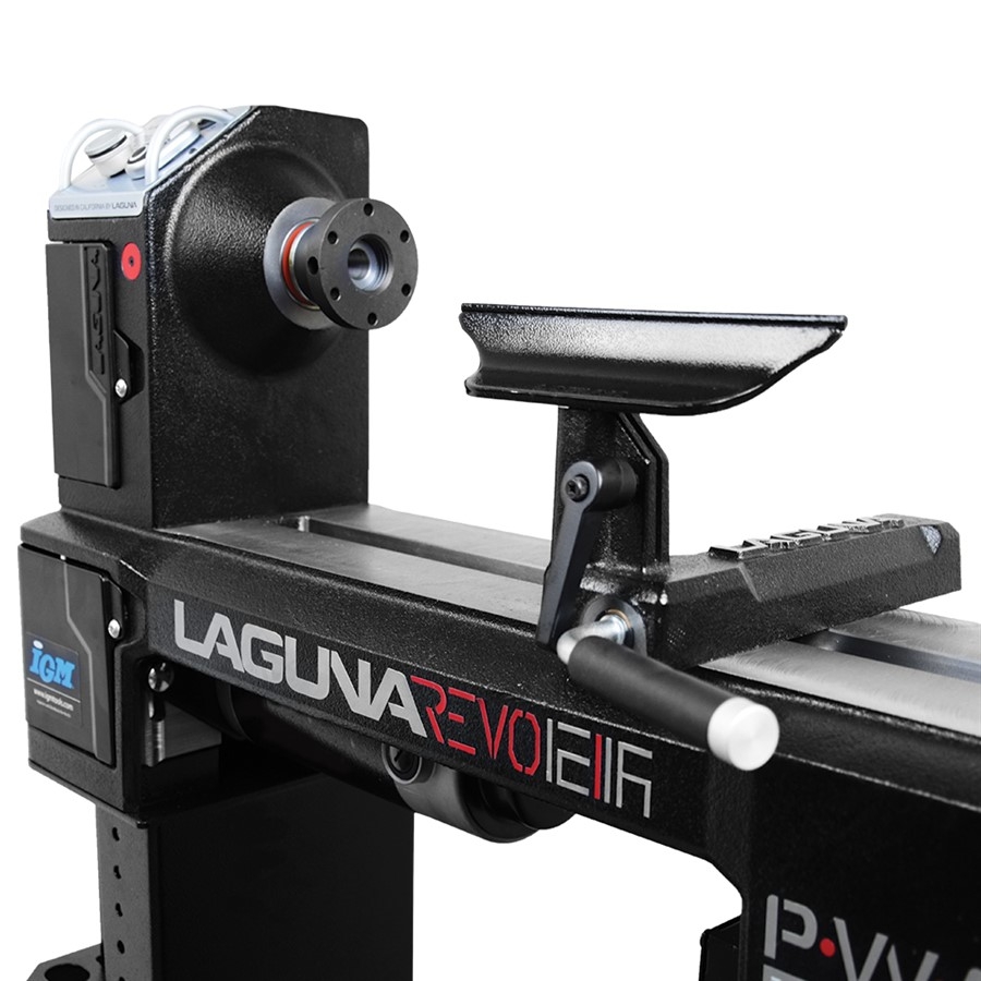 Laguna dreiebenk Revo 1216 er det nærmeste du kommer ren perfeksjon. Umiddelbare kjennetegn er den ergonomisk utformede maskinkroppen med vinklet kontrollpanel, solide og perfekt maskinerte betjeningsorganer, og perfekt maskinerte overflater.