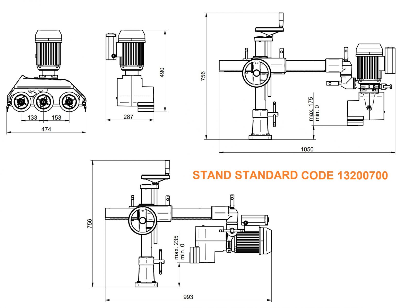 2 hastighets motor i tillegg til omskiftbare tannhjul, gir totalt 8 matningshastigheter, og dekker