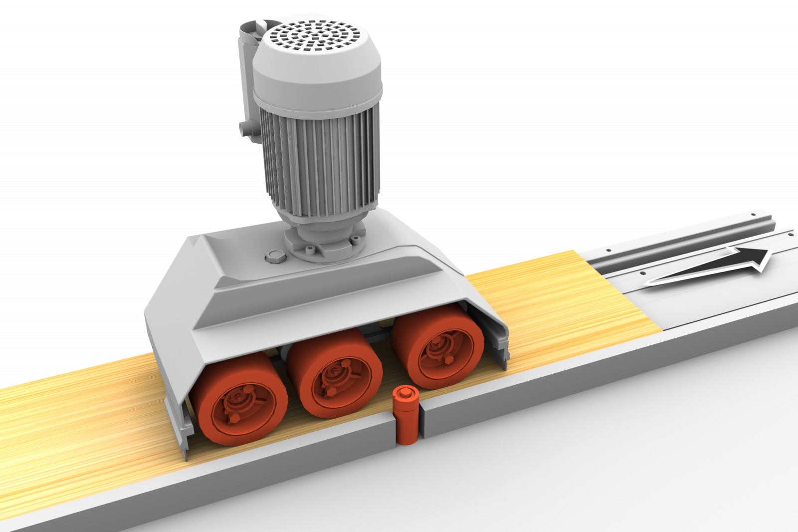 3 kraftige gummivalser sikrer en trygg og stødig føring, og bruk av matningsapprat gir betydelig øket sikkerhet for brukeren, samtidig som det øker effektiviteten og gir et bedre sluttresultat.