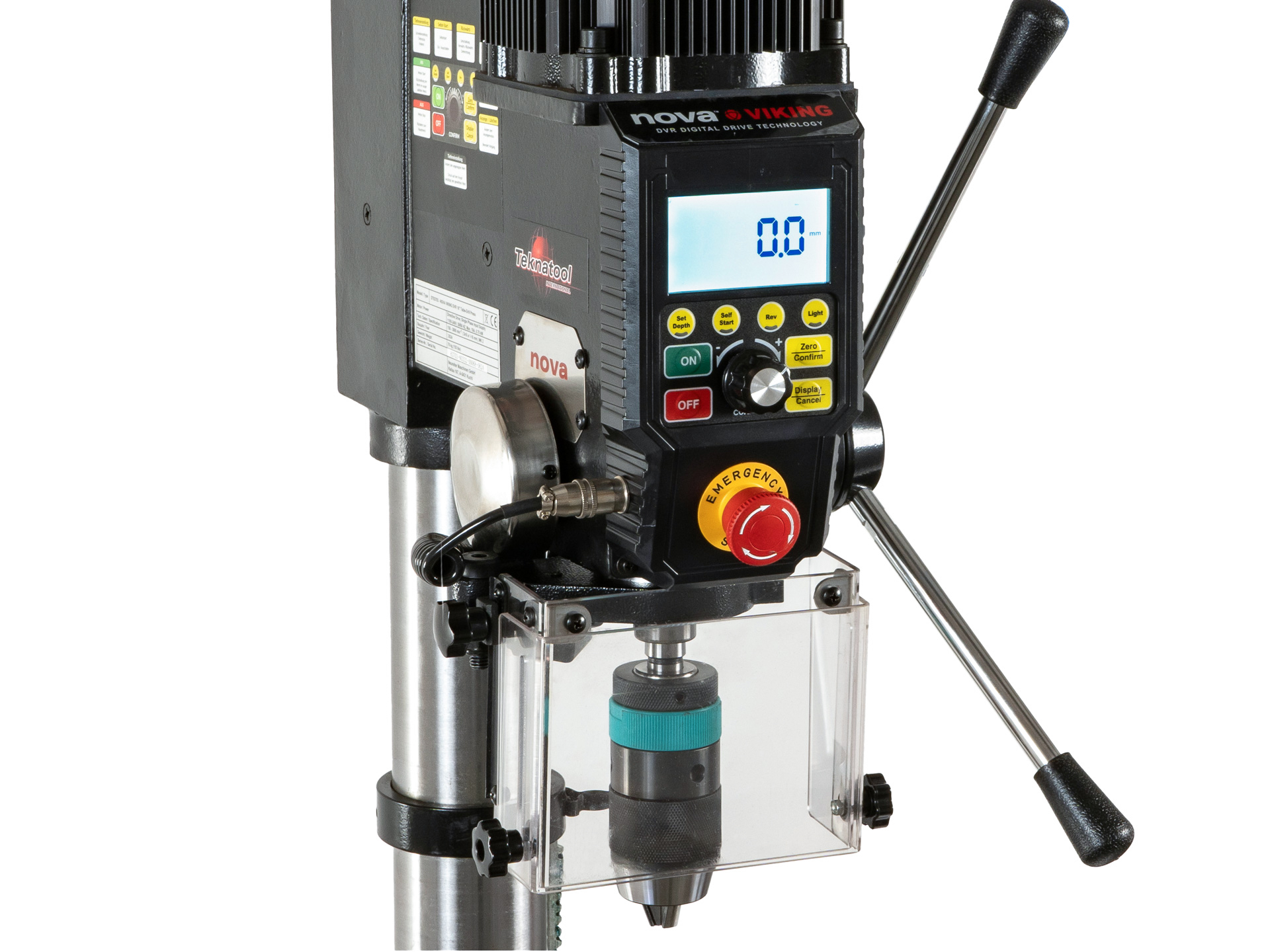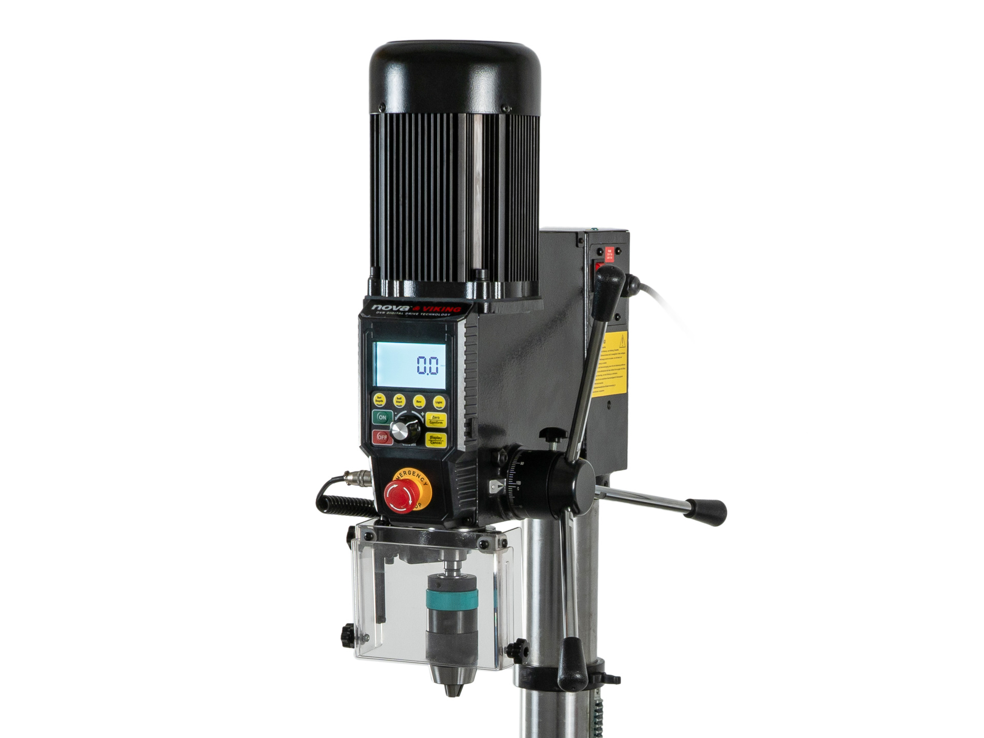 NOVA VIKING er en svært prisgunstig søyleboremaskin med det unike DVR-drivsystemet uten reim. Maskinen er utstyrt med en 1 HK motor med variabel hastighet fra 150–3 000 o/min (programmerbar opptil 5 000 o/min).