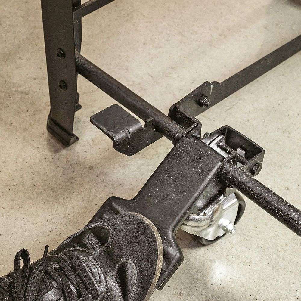 ved krevende bruk. Med pedalmekanismen og integrerte hjul er stativet lett å