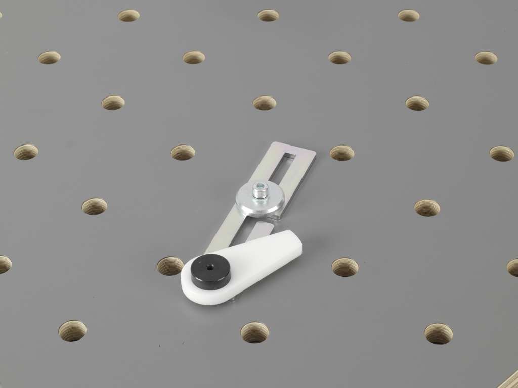 Eksenterfastspenner for fastspenning av emner mot anlegg. Festes i standard 20 mm hull i rasterbord