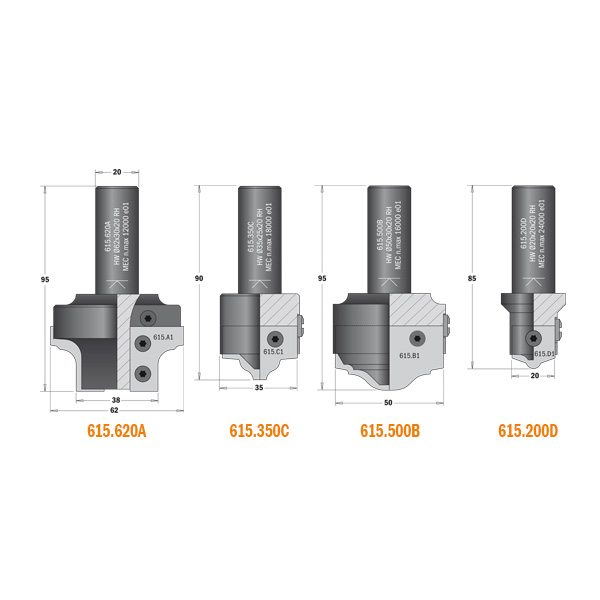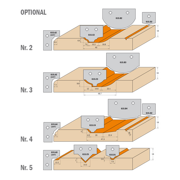 Komplett fresesett med utskiftbare HM skjær for profilfresing av skapdører i MDF