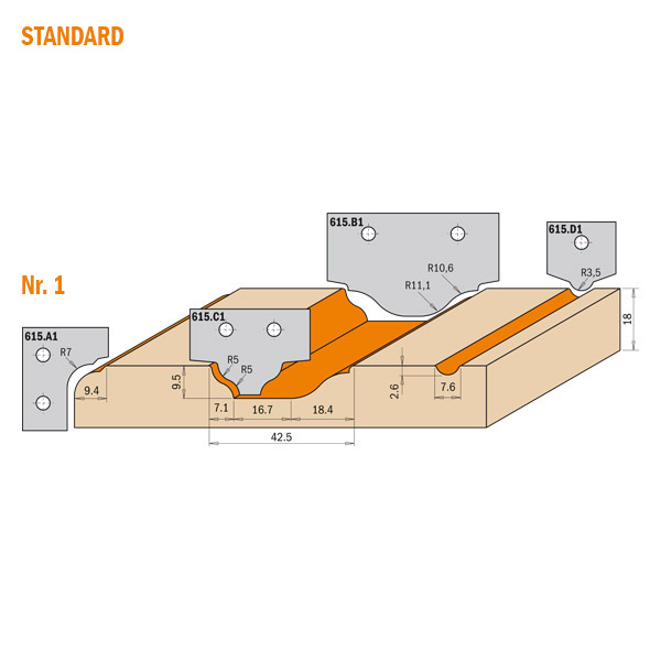 HM profilskjær for standardprofil nr. 1