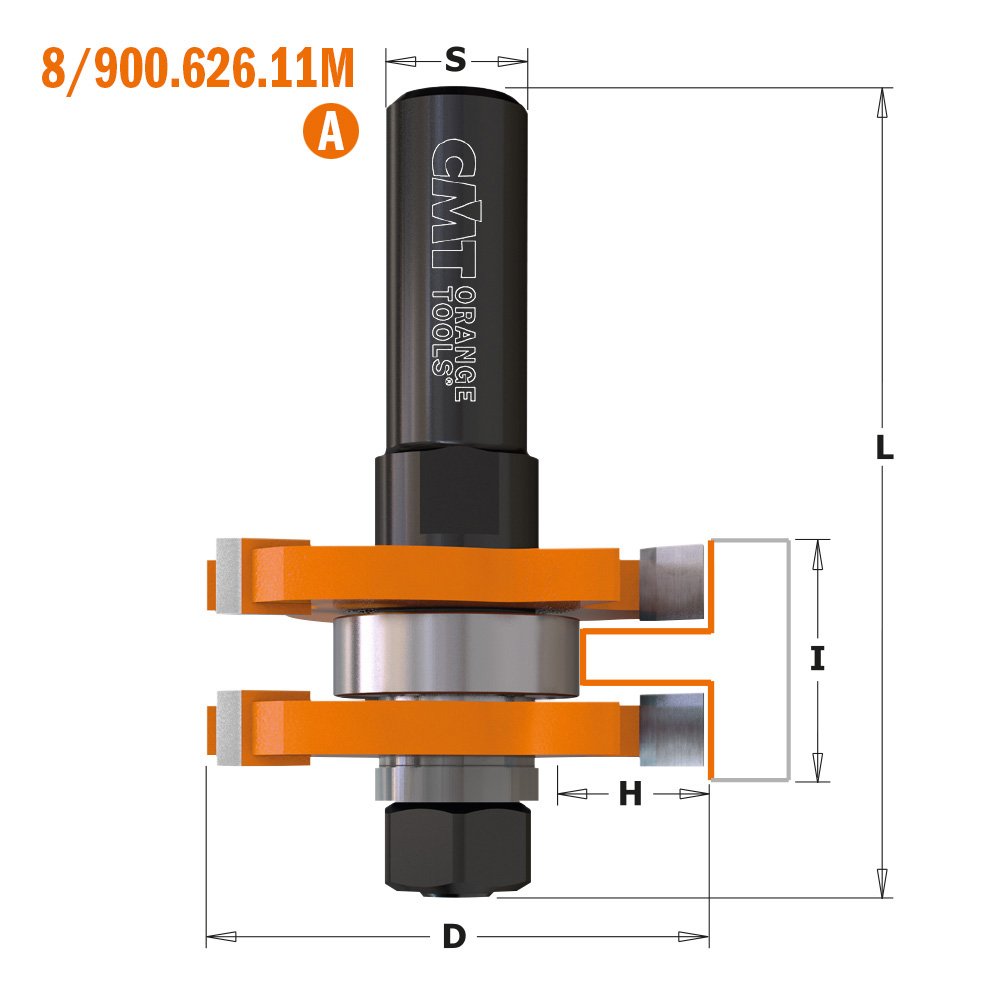 Fresesett for not-fjær i materialtykkelse inntil 19 mm