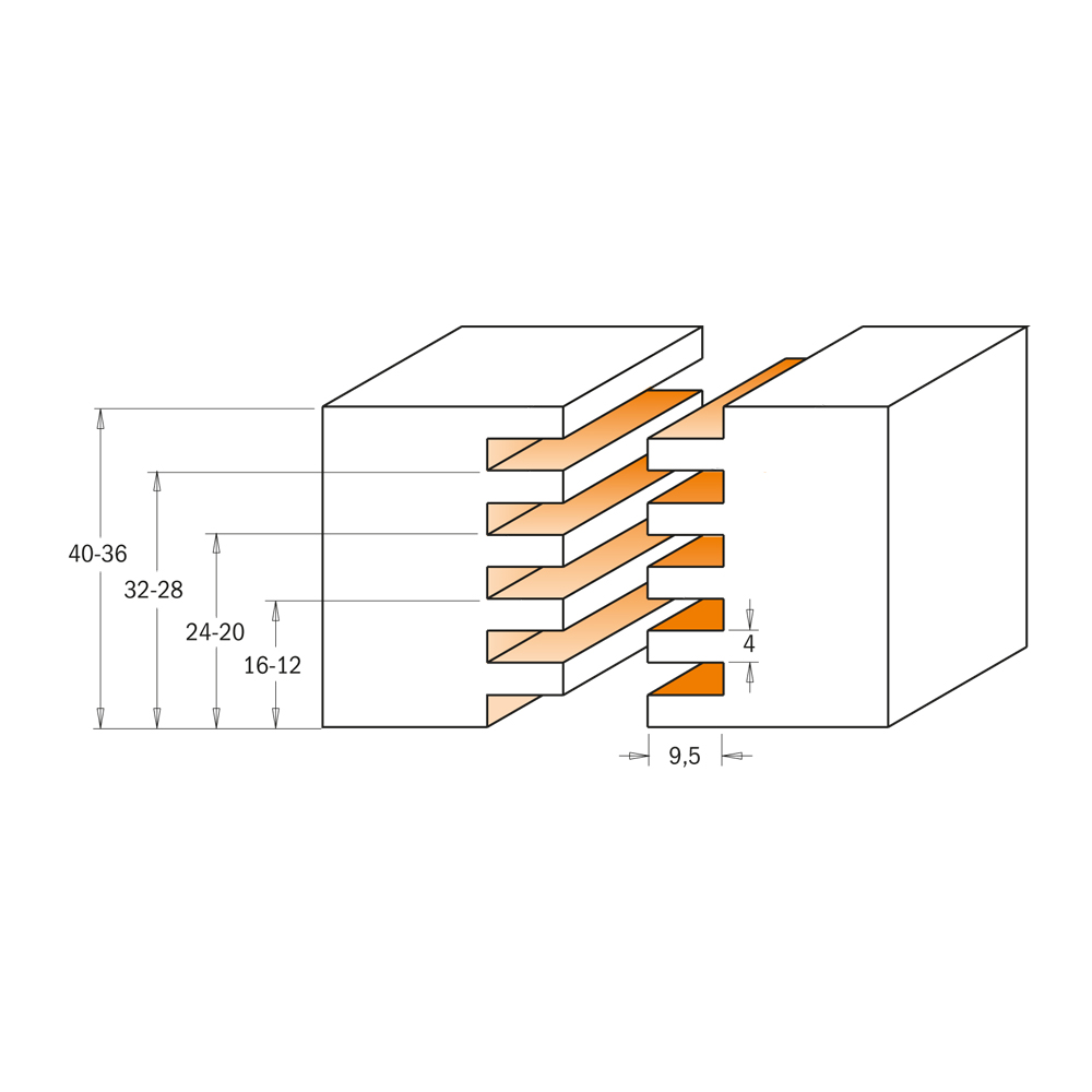 Med dette fresesettet kan du frese fingerskjjøter eller box joint i emnetykkelser fra 40-12 mm