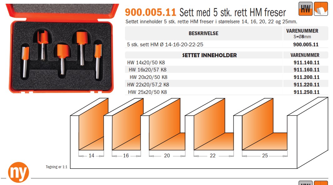 5 stk HM freser: 14 mm 911.140.11 16 mm 911.150.11 20 mm 911.200.11 22 mm 911.220.11 25 mm 911.250.11