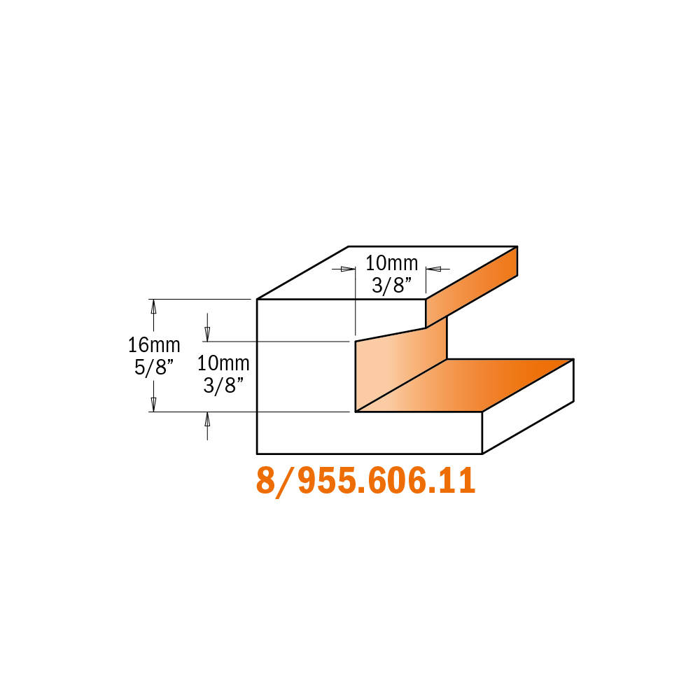 CMT 855.606.11 Skuffegrepsfres – håndtaksfres rett design med faset innerkant