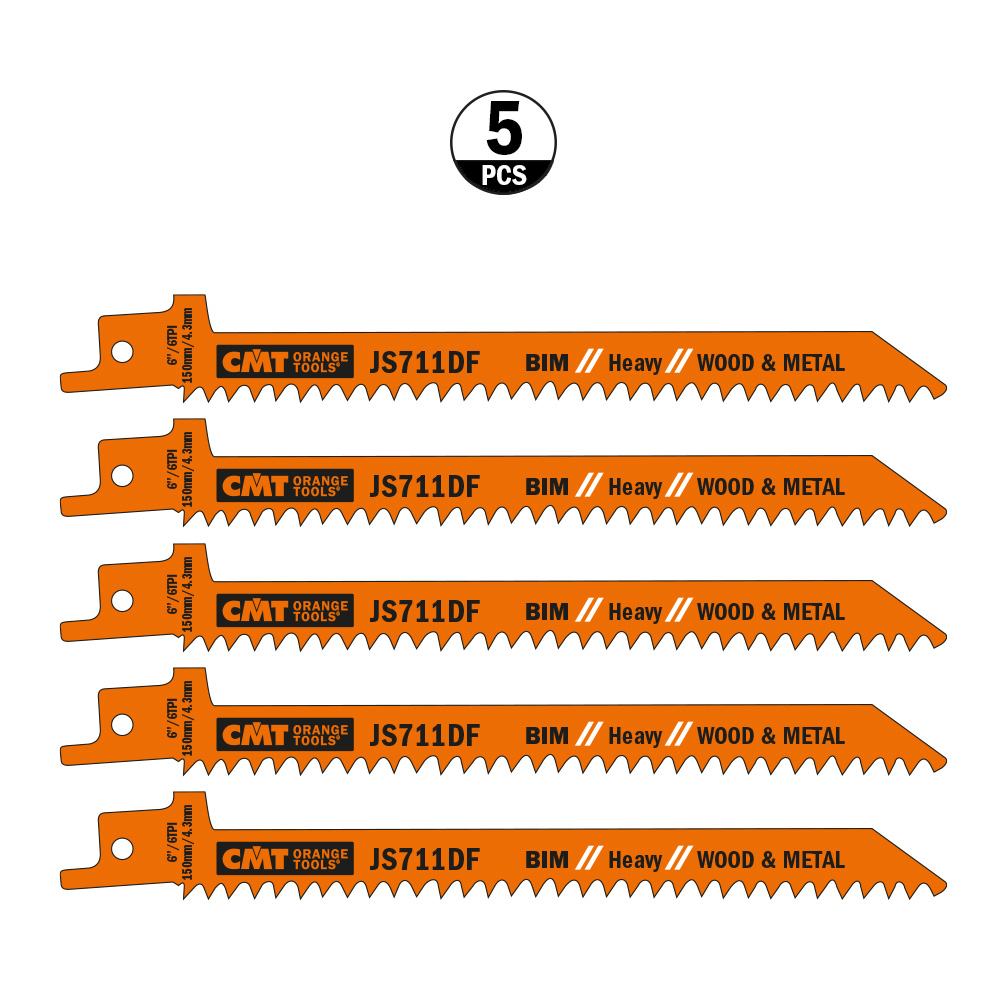 Bajonettsagblad BIM tre og metall 150x12x1,25 TPI6 5-pk.