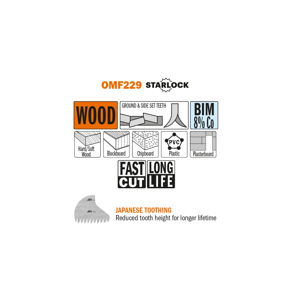 med Japanske dobbelt-rekkede herdede tenner for rene raske snitt i myke og harde treslag, spon, plast