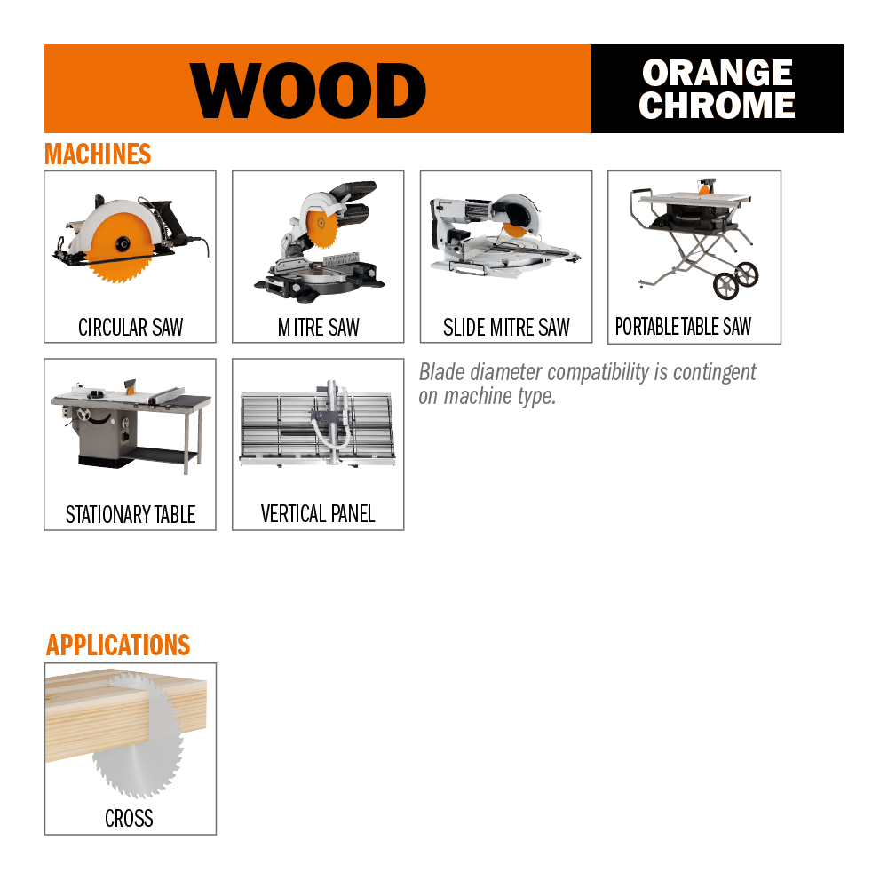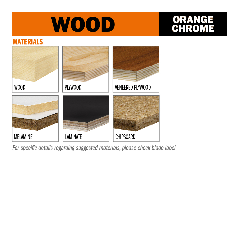 Bladet er produsert i laserskåret premium stål fra Tyskland og utstyrt med støydempende spor som reduserer vibrasjoner og gir jevnere gange. Tennene i kromkarbid holder seg skarpere lenger og gir rene, flisfrie kutt. Med avansert balansering og slitesterkt Orange Chrome® belegg får du et sagblad med optimal ytelse og minimalt vedlikehold.