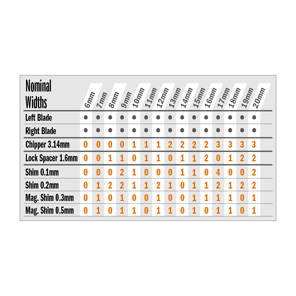 Dadoblad med låseringer slik at segmentene ikke kan rotere og komme i kontakt med hverandre.