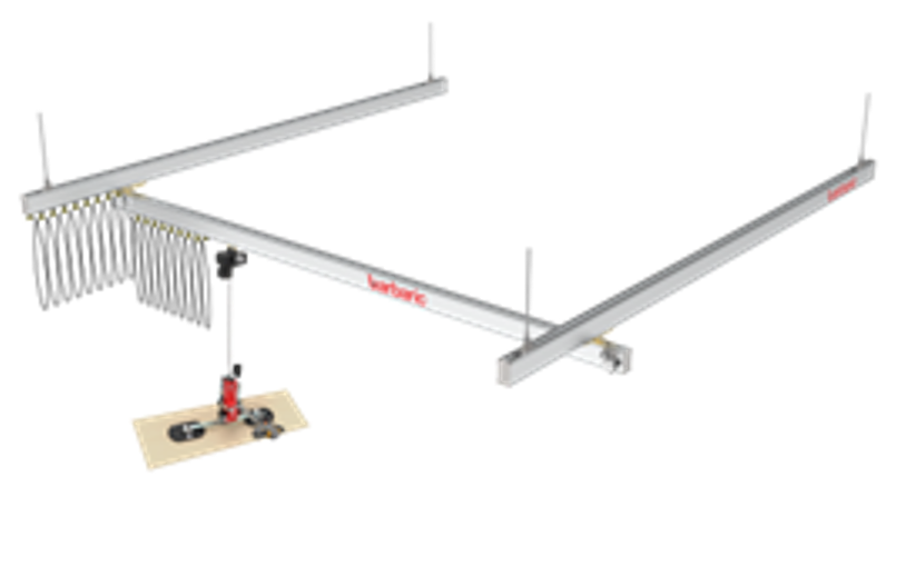 Barbarics lette aluminiums traverskransystem for manuell betjening gir full fleksibilitet og bevegelse med vakumløftere over større områder, takket være en sporvidde på opptil 8 meter. Systemet har trolleys med styreruller på sidene, som gir jevn og stabil bevegelse. Dette systemet er ideelt for applikasjoner som krever presis håndtering og effektiv bevegelse av materialer over store avstander. Med høyt tilpassingsnivå kan systemet utstyres med forskjellige tilleggsalternativer for å møte spesifikke behov.