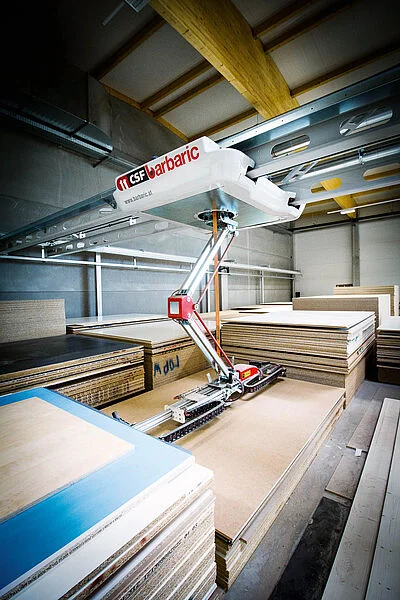 Barbaric CSF er et moderne og høyytende automatisk platelagersystem utviklet for bedrifter som ønsker maksimal effektivitet i håndtering av treplater, MDF, HPL, kryssfiner og andre plateprodukter. Systemet optimaliserer både lagring og logistikk, og sørger for rask, sikker og skånsom flytting av materialer direkte til sag, CNC eller produksjonslinje.