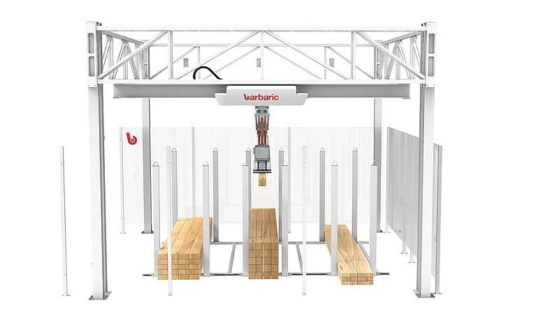 Barbaric SWS er et kraftig og intelligent lager- og håndteringssystem utviklet spesielt for trelast, emner, plank og bjelker. Systemet automatiserer all lagring, sortering og materialflyt, og sikrer rask, trygg og skånsom håndtering av store og tunge emner – helt uten manuell løfting.